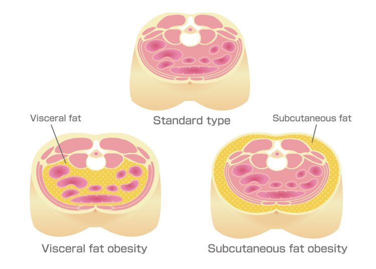 There are two main types of fat on your body: subcutaneous fat and visceral fat.