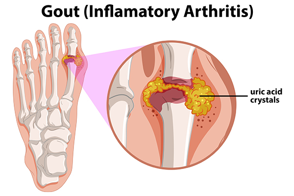 Gout is the most common inflammatory disease in most western nations, and is diagnosed by the presence of hyperuricaemia (elevated uric acid in the blood). It is more common in men and tends to occur in overweight people, those who carry weight on their torso, people with high blood pressure or type 2 diabetes. The prevalence of gout is increasing in most parts of the world, so during the past few years there has been more research on its relationship to cancer.