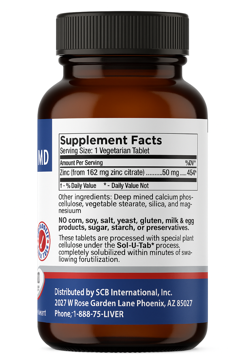 Zinc(from 162 mg zinc citrate)) 50mg Other Ingredients:Deep Mined Calcium Phosphate, Cellulose, Vegetable Sterate, Silica, and Magnesium Sterate (vegetable source)