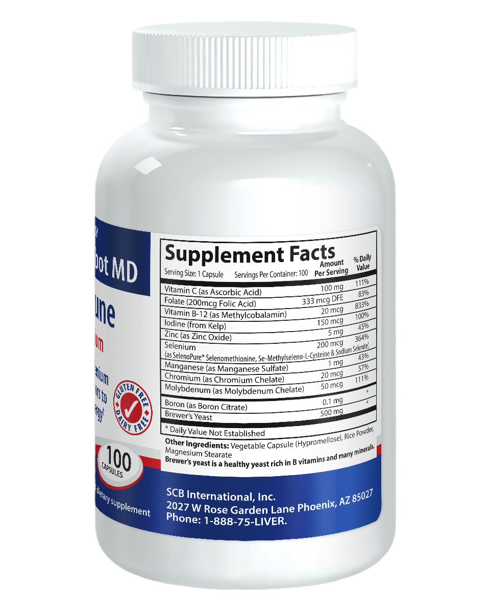 Vitamin C (as Ascorbic Acid) 100mg Folic Acid 200mcg Vitamin B-12 (as Methylcobalamin) 20mcg Iodine (from Kelp) 150mcg Zinc (as Zinc Oxide) 5mg Selenium (as SelenoPure® Selenomethionine, Se-Methylseleno-L-Cysteine & Sodium Selenite) 200mcg Manganese (as Manganese Sulfate) 1mg Chromium (as Chromium Chelate) 20mcg Molybdenum (as Molybdenum Chelate) 50mcg Boron (as Boron Citrate) 0.1mg Brewer’s Yeast (Brewer’s yeast is a healthy yeast rich in B vitamins) 500mg Other Ingredients: Vegetable Capsule (Hypromellose), Rice Powder, Magnesium Stearate (vegetable source)
