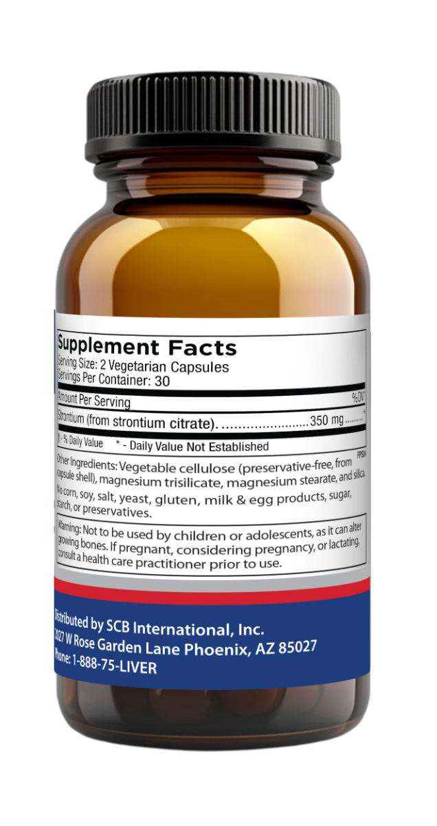 Strontium (as Strontium Citrate) 350mg Other Ingredients: Vegetable Cellulose (preservative-free, from capsule shell), magnesium trisilicate, magnesium stearate (vegetable source), and silica NO Soy, salt, yeast, gluten, milk & egg products, sugar, starch, or preservatives